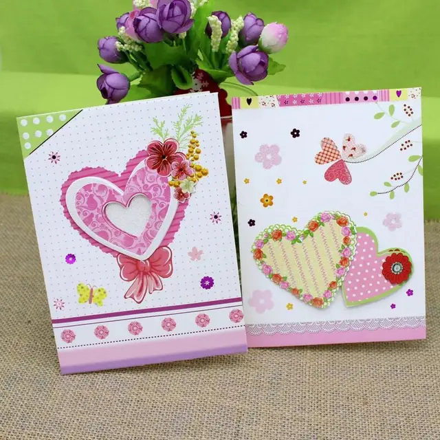 Lucu Jantung Bunga Cetak Buatan Tangan Hari Kartu Pos via id.aliexpress.com