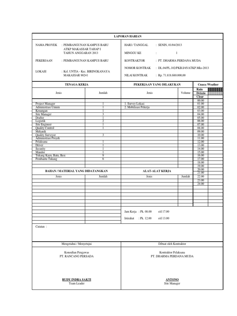 Contoh Laporan Proyek Konstruksi Baik Laporan Harian via www.scribd.com